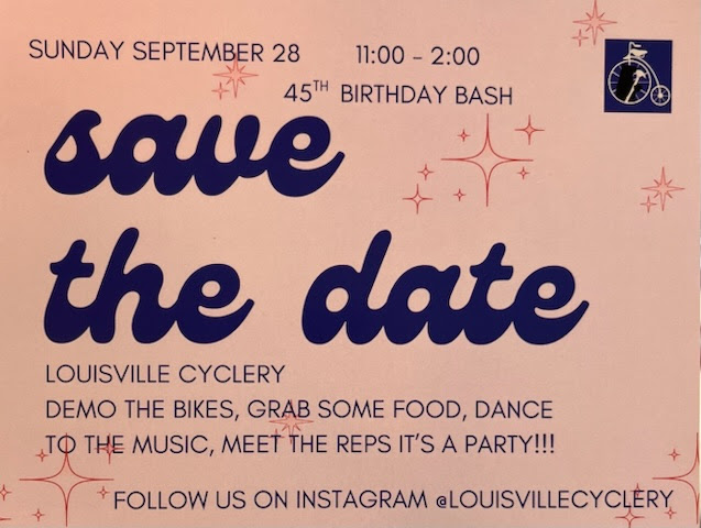 | 45th Anniversary! September 28th 11-2pm 889 E So. Boulder Rd. Join us for our 45th birthday bash! As one of the oldest businesses in Louisville, we are excited to celebrate bikes, history, and Louisville. Save the date and we look forward to seeing you there!