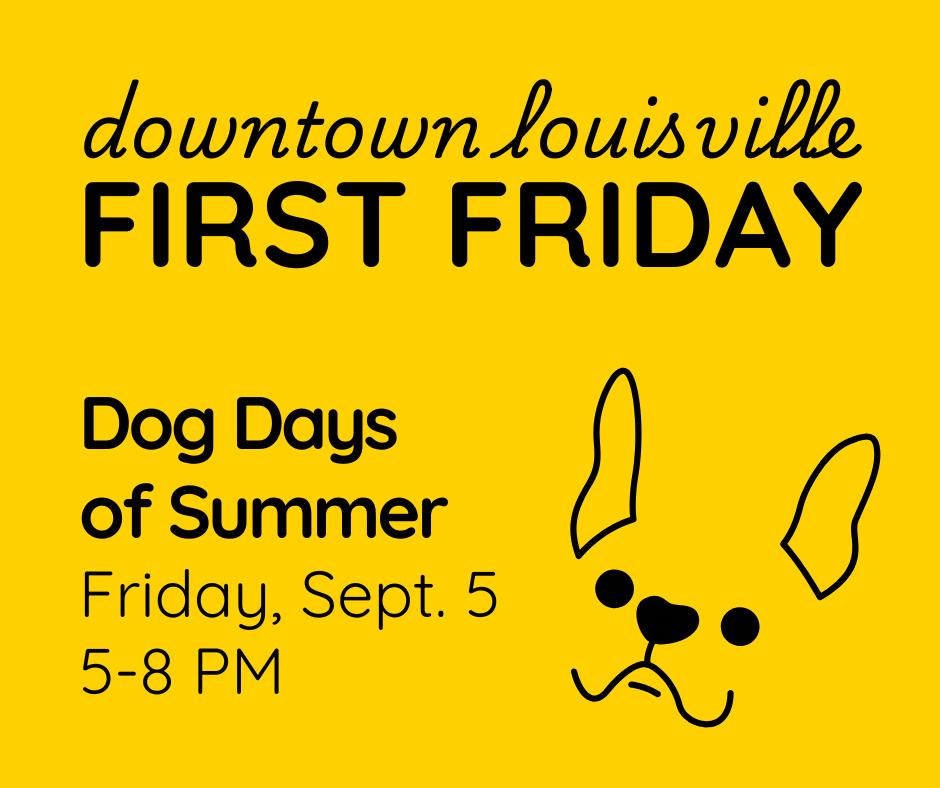 | First Friday – Dog Days of Summer!September 5th 5-8pm Downtown Louisville September First Friday is all about our furry friends! Main Street will be closed from Pine Street to South Street, so bring your pup* and stroll downtown, check out the Dog Days Market on Spruce Street, enjoy LIVE music all over downtown, lawn games & activities, and stop into all the participating businesses for sips, snacks, shopping, and art!