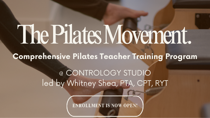 | Pilates Teacher Training Now Enrolling 920 Main St., B Pilates Teacher Training is Here! The Pilates Movement is a 550 hour Comprehensive Pilates Teacher Training Program, led by studio owner and school director, Whitney Shea, PTA, CPT, RYT. Enrollment for the program is NOW OPEN, and space is limited. Contact Whitney at info@contrologystudioco.com to schedule a Teacher Training Discovery Session to learn more or to sign up! |